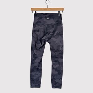 Lululemon Women Leggings Gray Wunder Under Crop Camo Pull On Stretch Yoga Size 4