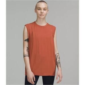 Lululemon Women Modal Pleated Shoulder Tank Top Red Rock Rust Orange Relaxed 14