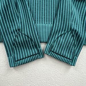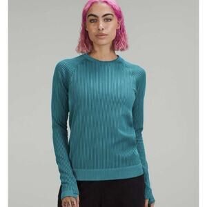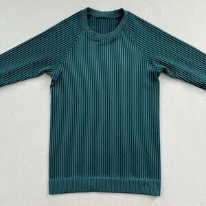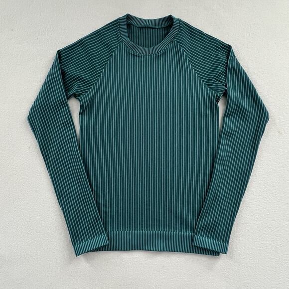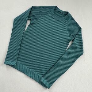 Lululemon Women Rest Less Pullover Colour Rib Green Jasper Oceanic Stripe Top