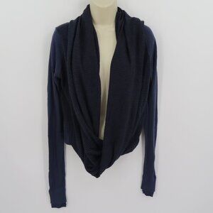 Lululemon Womens 12 Iconic Wrap Cadet Blue Stripe Pullover Cowl Neck Sweater Top