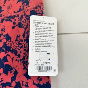 Lululemon Women’s 4 Wunder Under Tight Navy Orange Floral New NWT