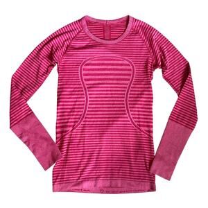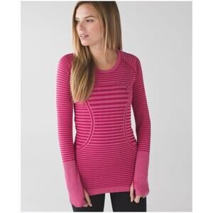 Lululemon Women’s 6 Pink Stripe Swiftly Tech Long Sleeve Top Pullover Seamless