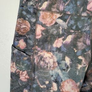 Lululemon Women's 6 Speed Up Cropped Capri Leggings Grey Pink Rose Floral Print