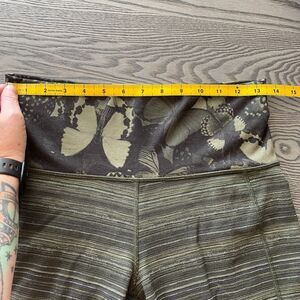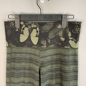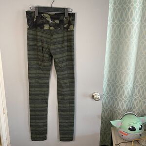 Lululemon Womens 8 Tall Striped Olive Green Workout Yoga Leggings **READ**