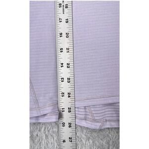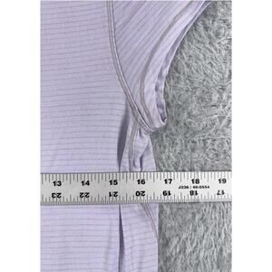 The Lululemon Women’s Another Mile SS Tee in Heathered Sheer Lilac, Size 4 is a stylish and versatile top perfect for casual occasions. Made with a blend of polyester, Seriously Light Luon Fabric, nylon, and elastane, this tee features a crew neck, pullover closure, and cap sleeves. It is designed for athletic fit and is machine washable, making it easy to care for. The lilac color and striped pattern make it a fashionable choice for any season. It’s moisture wicking with four way stretch, cottony soft, and lightweight. It’s rarely worn, in excellent condition from a clean, smoke-free home.