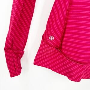 Lululemon Womens Athleisure Think Fast Thumbhole Pullover Size 2 Berry Striped