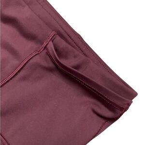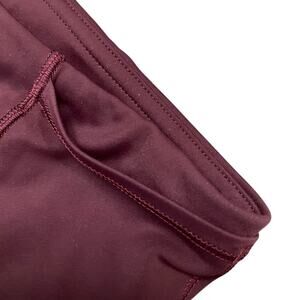 Stylish burgundy high-waisted shorts from Lululemon. Perfect for workouts or casual wear.