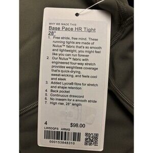 Lululemon Women’s Base Pace HR Tight 25" Inseam Color Army Green ARMG Size 4 New