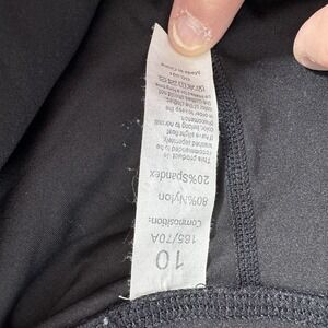 The product is a pair of Lululemon women's black athletic leggings in size 10. These leggings are designed for active women and feature a comfortable athletic fit with compression in the leg area. They are suitable for various activewear occasions and have an ankle-length style for added comfort and flexibility. Made by the popular brand Lululemon, these leggings are a versatile and stylish option for women looking for high-quality activewear.