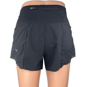 Lululemon Womens Black Eyelet Scalloped Pull On Activewear Running Shorts Size 2