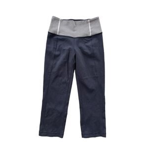 Lululemon Women’s Black Gather & Crow Stripe Leg Slit Crop Leggings Size 2