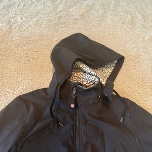 Lululemon Women's Black Heart Pattern Lining Hooded Jacket Solid Black Size 2