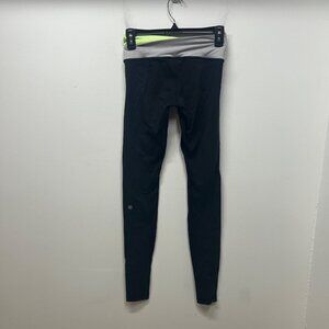 Lululemon Womens Black Leggings With Multicolor Waistband Stretch Activewear Yog