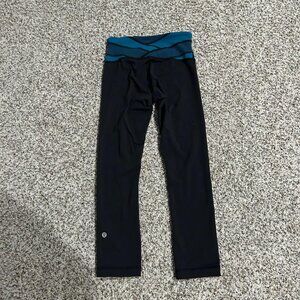 Lululemon leggings black and blue striped detail, super cute and good condition, no pilling really.