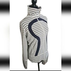 Lululemon Womens Blue And White Long Lenth High Neck Striped Stride Jacket 6