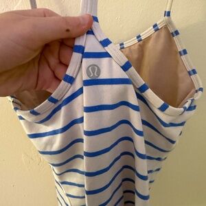 Lululemon Women's Blue Striped Size 6 Power Y Tank Top Built In Bra Racerback