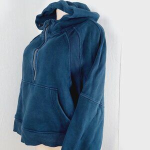Lululemon Women's Blue Twill Scuba Oversized Half-Zip Pullover Hoodie Sz XL/XXL