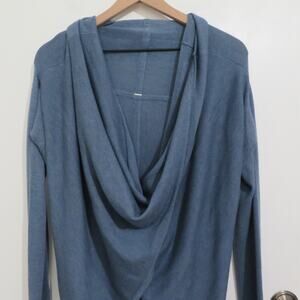 Lululemon twist front sweater in blue. Long sleeve draped cowl neck sweater. Soft, stretchy, lightweight fabric great for lounging and layering. Relaxed fit.