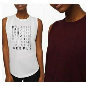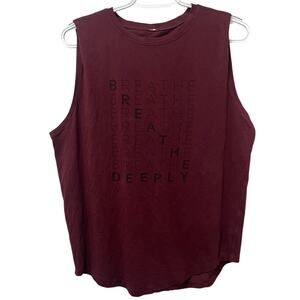 Lululemon Brunswick Muscle Tank in Garnet /Maroon with the expression Breathe Deeply.