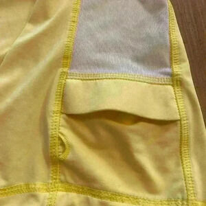 This is a great condition lululemon athletica long sleeve crewneck top size 6. It is yellow and white with netting on part of the sides and part of the arms. It has the thumb holes and a little zipper pouch. Thank you for considering my item.🌻