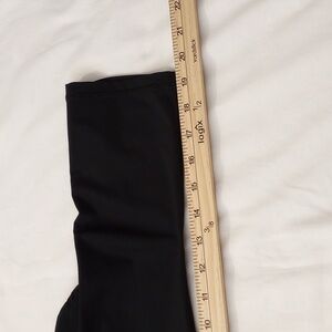 These are Lululemon capris in a size 6. They have a polka dot, hole, print on the back and two small pockets on the waist. They have a light pink army print on the waistband. There are a few places where the stitching is coming loose, but the seams are still intact.