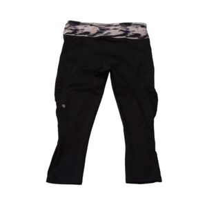 Lululemon Womens Crop Leggings Sz 6 Breezy Camo Black Capris Workout Athletic