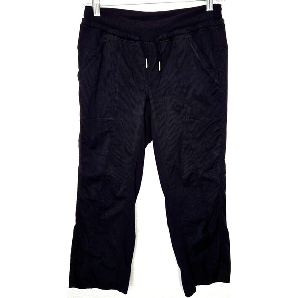 Lululemon Womens Dance Studio Capri Crop Pants - Size 4 - Black - Mid Rise - Active - Yoga - Gym- Striped Solid- Drawstring - Pockets