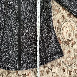 black white speckled lululemon define jacket size 6, lululemon full zip jacket thumbholes yoga athleisure, lululemon luon jacket breathable stretchy black white print, lululemon womens activewear speckled zip jacket, lululemon like new define jacket size 6