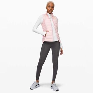 Lululemon Down for It All Vest - Porcelain Pink Size 6 Great Used Condition - some dark down feathers are seen through the fabric, minor markings as seen in photos Has been used, so some down feathers have been lost, but lots of life left! This technical vest is fully loaded for running in cold, wet weather. PrimaLoft® insulation warms places most exposed to rain and snow, while down feathers lock in heat at your core. Toss your gloves and beanie in the side pockets and you're ready to run. Glyde DWR-treated Glyde fabric is windproof and water-repellent. windproof water-repellent 100% of our down is certified to the Responsible Down Standard (RDS) by Control Union (No. 847515) Water-Repellent Tech Fleece Four-way stretch, breathable tech fleece fabric is DWR-treated to protect you from the elements. Four-way stretch breathable water-repellent Features Designed for: On the Move Warm when wet: Insulation in upper body stays warm when wet Down insulation: 700-fill-power goose down is strategically placed for warmth Secure storage: Zippered exterior pockets with a hidden phone sleeve Shine-bright : Reflective detail helps keep you on the radar in low light Down insulation: 700-fill-power goose down is strategically placed for warmth Primaloft® insulation: Synthetic insulation is strategically-placed to keep you warm where you need it most