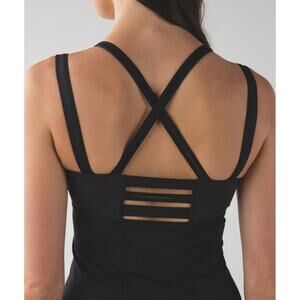 Lululemon Womens Happy Strappy Built In Shelf Bra Athletic Active Gym Tank in Black. Size 2.