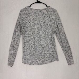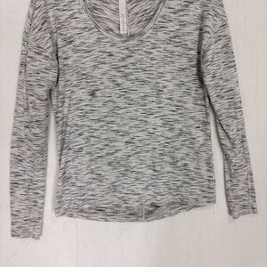 Lululemon Women's Heathered Striped Grey Scoop Neck Workout Long Sleeve Top Size