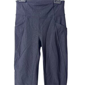 Lululemon Womens High-Rise Dark Black Patterned Leggings Size 4 With Pockets