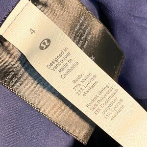The Lululemon Women's High-Rise Blue Shorts combine both fashion and functionality. Designed in Vancouver and crafted in Cambodia, these shorts are made from a luxurious blend of nylon and elastane, ensuring comfort and flexibility for your active lifestyle. Their captivating blue hue and high-rise design make them a stylish and supportive addition to any wardrobe.