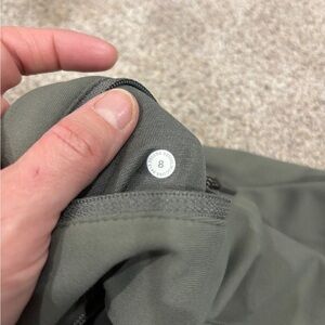 Lululemon Women’s In Focus Run Tight Sense Knit Army Green Size 8. Very good preowned condition! No rips, holes, or stains. Hang tag is removed, but size and style is listed on size dot inside back zipper pocket.