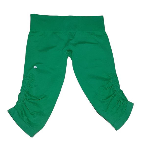 Lululemon Women’s In The Flow Crop Ribbed Ruched Leggings Green Size 10 Size: 10