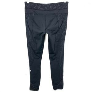 Lululemon Womens Inspire Tight II Animal Swirl Embossed Black Zip Pockets Size 6