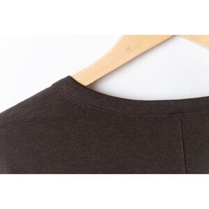 This Lululemon women's long-sleeve shirt in size 12 features a classic crew neck and a pullover closure. The shirt is crafted from a comfortable cotton blend knit fabric in an espresso brown color with the brand's logo displayed prominently. Ideal for travel and casual wear, this basic T-shirt with a fitted sleeve design is versatile for all seasons, offering a breathable and packable option for outdoor activities or daily wear. Perfect for a classic and designer-inspired look, this shirt is a stylish addition to any wardrobe.