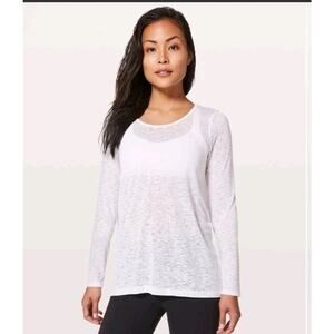 Keywords: Lululemon burnout top, women’s long sleeve athletic shirt, open back workout top, spacedye white long sleeve, lululemon M long sleeve, lululemon open back top