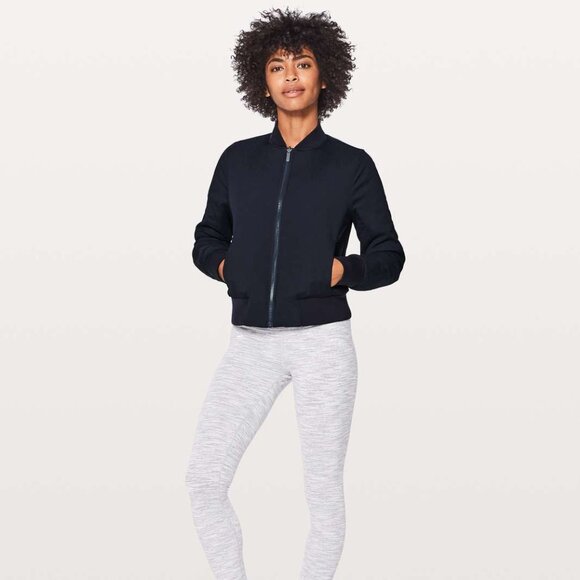 Lululemon Women's Midnight Navy Non-Stop Full-Zip Reversible Bomber Jacket Sz 2