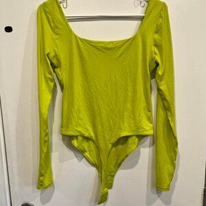 Neon yellow/green Lululemon long sleeve bodysuit with button snap crotch size Large NWOT