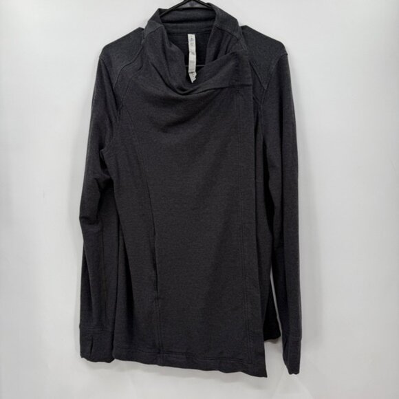 Keywords: Lululemon, jacket, wrap front, yoga, athleisure, thumb holes, gray, size 12, cozy, casual, activewear, workout, layering, fitness