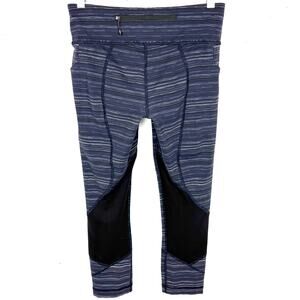 Lululemon Womens Pace Rival Crop Leggings Cyber Stripe Naval Blue Black Size 6