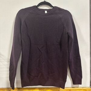 Keywords: Lululemon, women's sweater, pullover, merino wool, purple sweater, fall fashion, crew neck, long sleeve, knitwear, ribbed texture, casual wear, pre-owned, size 10, hand wash, solid pattern.