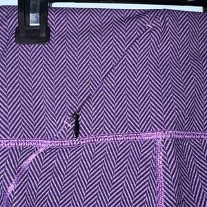 These Lululemon leggings offer a stylish chevron pattern in purple with a contrasting.Designed for comfort and flexibility.