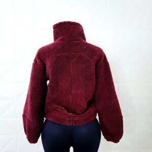Lululemon Women's Red Merlot Cinchable Fleece Zip-Up Cozy Teddy Jacket Size 6