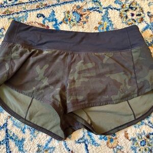 Lululemon Women's Run Speed Up Short *2.5" Size 6 in Incognito Camo Multi Gator Green / Black