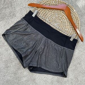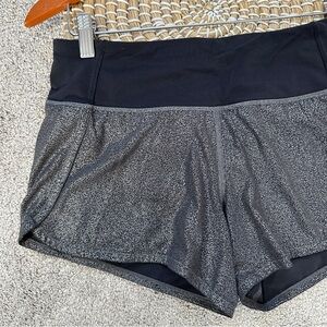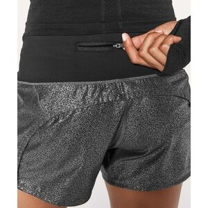 Lululemon Women’s Run Times Short II 4" in Luminosity Foil Print Black Silver 6