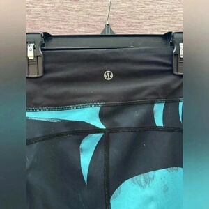 Lululemon Women's Run Top Speed Cropped Leggings Size 6 Black & Turquoise