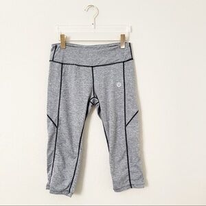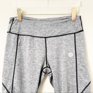 Lululemon running crop leggings. Heathered gray with darker seams. These are an older vintage style of Lulu’s with the logo on the front. Excellent pre-owned condition.