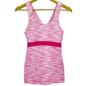 Lululemon Womens Scoop Neck Tank Top Size 8 Stretch Mesh Built in Bra Cross Back